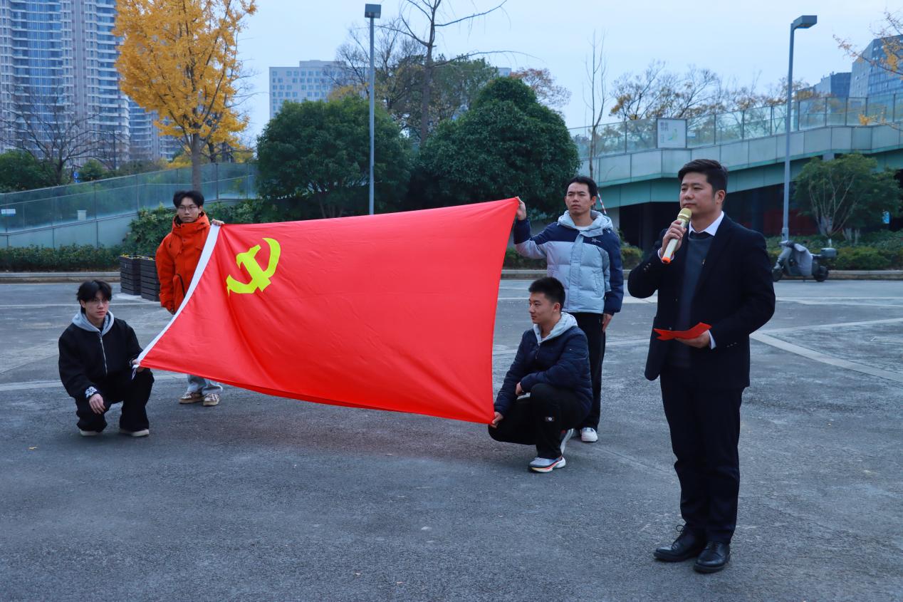 随后,柳艾岭带领全体教师党员在党旗下庄严宣誓:“党建融在课程思政里,把廉洁守在科研教学中,把责任扛在育人初心上,以政党治理之力,育时代新人之才!”铿锵誓言彰显了教师党员践行初心使命、潜心教书育人的坚定决心。